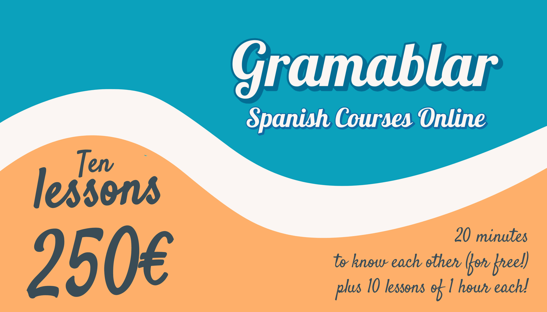 The first time you have 20 extra minutes for free, so we can get to know each other before the lessons